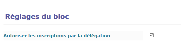 Autoriser les inscriptions par la délégation : Cette case à cocher, permet si activée, en plus de pouvoir importer des utilisateurs, de permettre aux délégataires de les inscrire directement dans les cours qu'il gère “en délégation ” et les affecter au groupe de son choix.