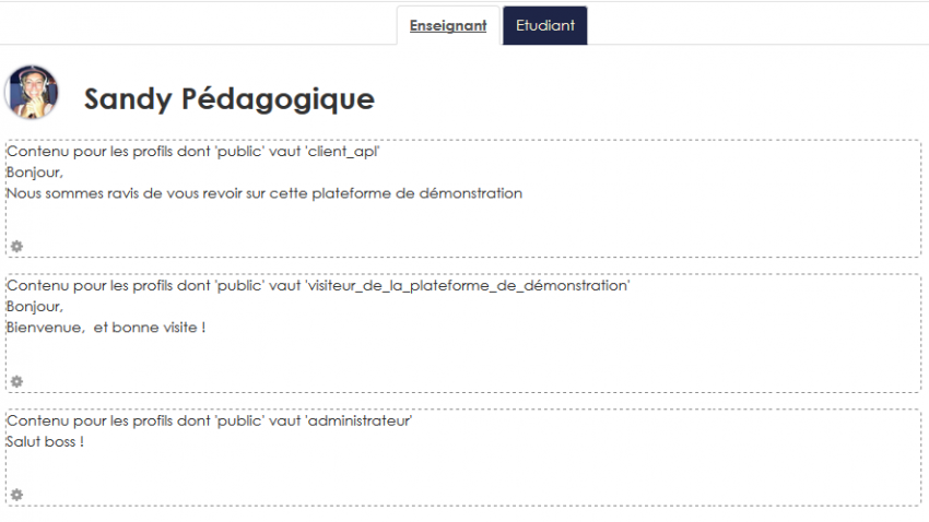 Nota : Le nom abrégé du champs (unique) est celui repris dans le widget. Autrement dit si par exemple, le nom du champs personnalisé est “public” en minuscule, il doit être repris à l'identique dans la liste des widgets : static_profile_field_public