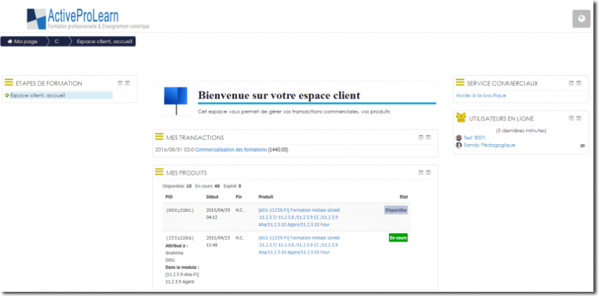 Le compte utilisateur créé permet au client de bénéficier de certains services comme l'accès à un espace de support client identifié (un cours spécialement organisé pour fournir le support client).