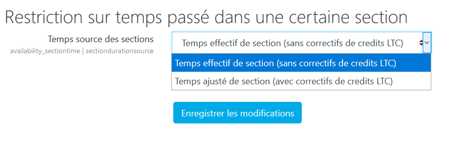 Si le LTC n'est pas pris en compte, dans ce cas, si un étudiant passe moins de temps que prévu par la restriction de temps sur la section, il ne pourra pas passer à la suite, même si le temps sur une activité est attribué par le contrat pédagogique calibré dans le LTC sur l'activité.