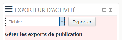 Ce lien via le bloc “Exporteur d'activités” vous permet comme son nom l'indique de gérer vos exports et voir leur état de publication en librairie :