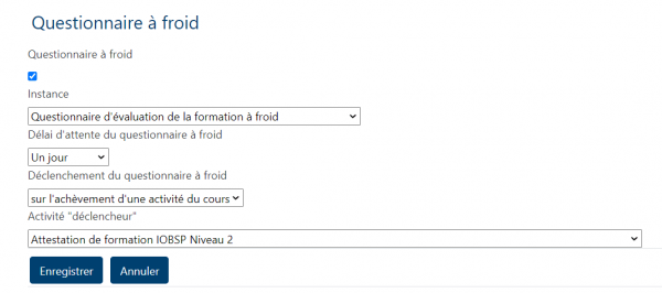 - Choisissez le délai pour émission du questionnaire (1 jour, un mois