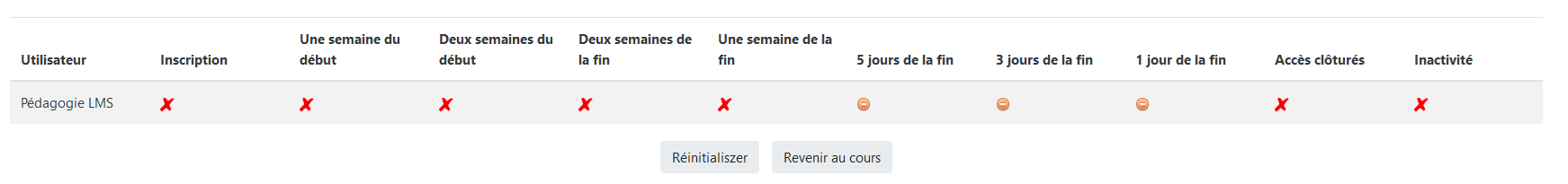 - Achèvement du cours : La règle d'achèvement du cours doit être précisée dans les réglages du cours