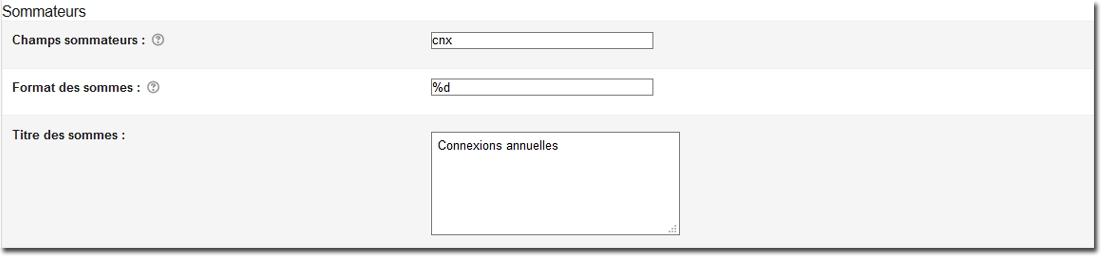Les sommateurs permettent d'exprimer directement sur l'affichage du tableau de bord des agrégations de valeurs (sommes) issues des données du résultat.