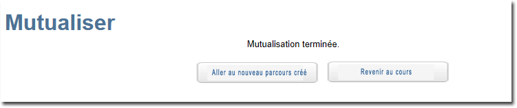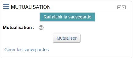 - Vous pouvez à présent mutualiser votre cours en cliquant sur “Mutualiser”. Notez que vous pouvez également rafraîchir, c'est à dire mettre à jour la sauvegarde si elle à été effectuée une première fois.