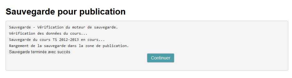 - Il est nécessaire qu'une sauvegarde existe pour pouvoir diffuser votre cours, cliquez sur “Sauvegarder”, vous obtenez une confirmation.