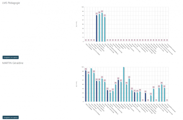 Sur le bloc : le lien voir les résultats : Les résultats sont consultables par usager à choisir dans la liste déroulante, et une capture image est possible.