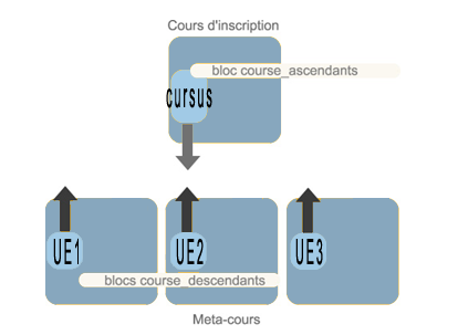 - Le bloc Mon parcours de formation (Course Ascendants) peut être utilement complété par l'usage du bloc Espaces Descendants dans les modules de formation ou unités d'enseignement.