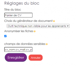 - Ajouter un bloc/Panier de CV