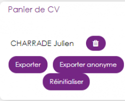 - L'export se fait suivant deux modes possibles : CV anonymisés ou non.