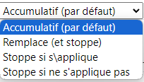 - Mode Stoppe si s'applique : La remise est calculée en mode accumulatif si elle s'applique et l'évaluation s'arrête là, même s'il reste des remises à évaluer.