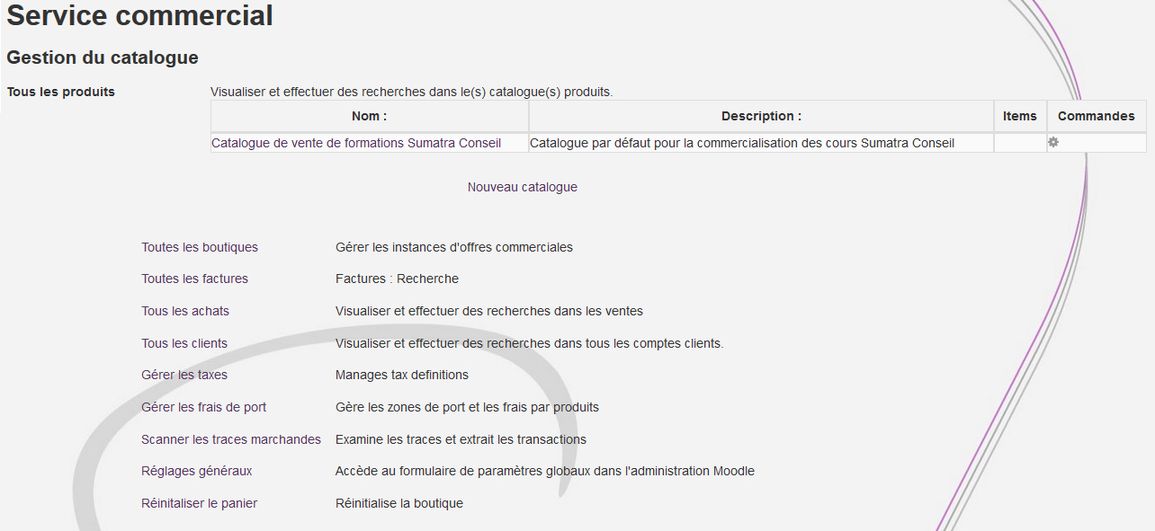 Accède au formulaire de paramètres globaux dans l'administration Moodle. C'est donc un raccourci vers le menu administration du site/plugin locaux/boutique (Soit http://votreMoodle/admin/settings.php?section=local_shop)