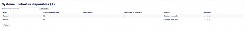 les cohortes peuvent jouer dans un contexte système, ou un contexte plus restreint, comme par exemple celui d'une catégorie de cours.