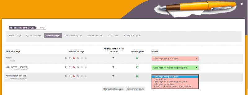 - Cliquez sur le bouton Gérer les pages (zone du haut)