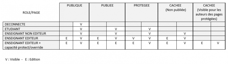 - Cette page est publiée (aux participants) : Page avec droits et capacités standards (Etudiants consultent, enseignants éditeurs éditent, enseignant non éditeurs tutorent etc.)