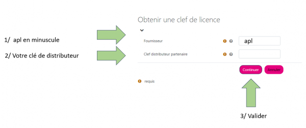- Entrez la clef d'activation (la clef vous aura été communiquée par APL)