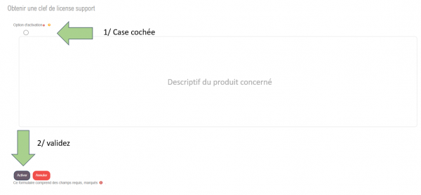 - Sélectionnez l'option de licence : Setup (ou renouvellement année n+1)