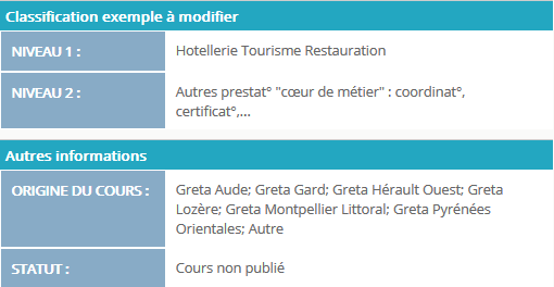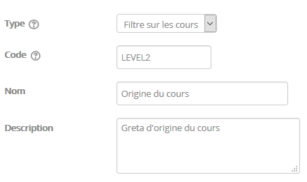 - Un filtre de cours : Un tag simple qui pourra être utilisé par des moteurs de catalogues de cours.