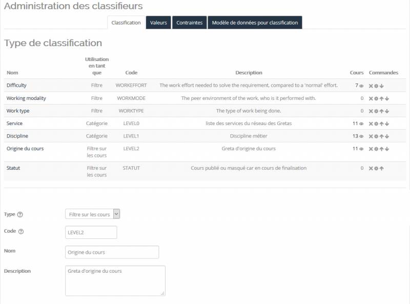 Pour créer et administrer des classifieurs du catalogue
