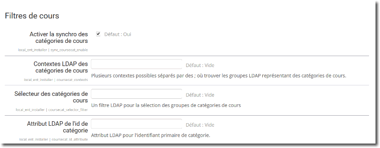 L'attribut LDAP qui porte la référence à la catégorie du cours. Plusieurs syntaxes sont possibles (voir ci-dessous).