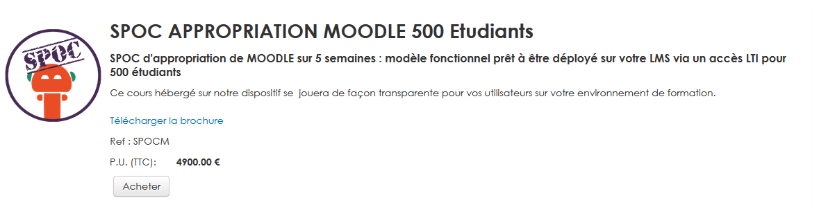 Proposer des cours à ses étudiants dans la boutique, sans gérer la production et l’administration de contenus sur son propre dispositif . Il s'agit donc de l' exposition de cours tiers accessibles en LTI, tout en gardant la maîtrise de ses inscriptions.