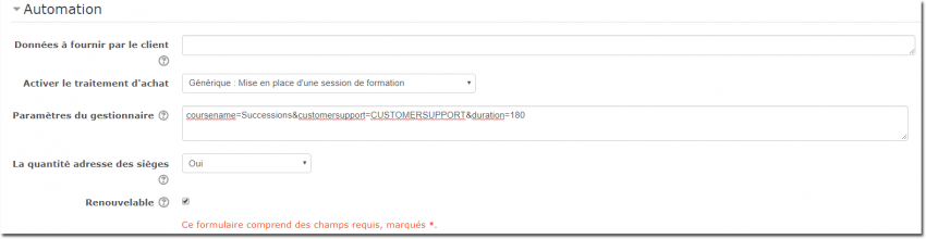 - starttime : Date de début de l'inscription (par défaut, date de l'achat)