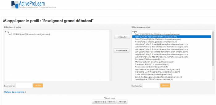 Faire ensuite passer coté gauche les utilisateurs concernés par le profil concerné.