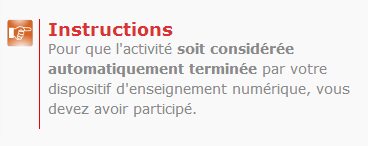 L'élément de cours “Instructions” permet de préciser les modalités opérationnelles sur les attendus pédagogiques.