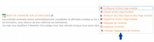 - Menu déroulant Ajouter une activité/Avancement et temps pédagogiques