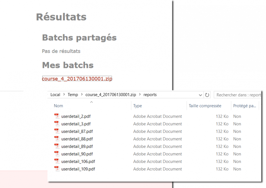Ce rapport gère une vue transversale multi-cours et un reporting des temps d'apprentissages. Il permet d'accéder à des vues agrégées par utilisateur, ou agrégées par cours (dans le cas d'instances multiples de modules de temps d’apprentissage), ou encore agrégé à la cohorte (rapports de promo). Il permet la mise en batch différé de génération massive de documents sur une population importante. Ces rapports peuvent également être générés de façon immédiate.