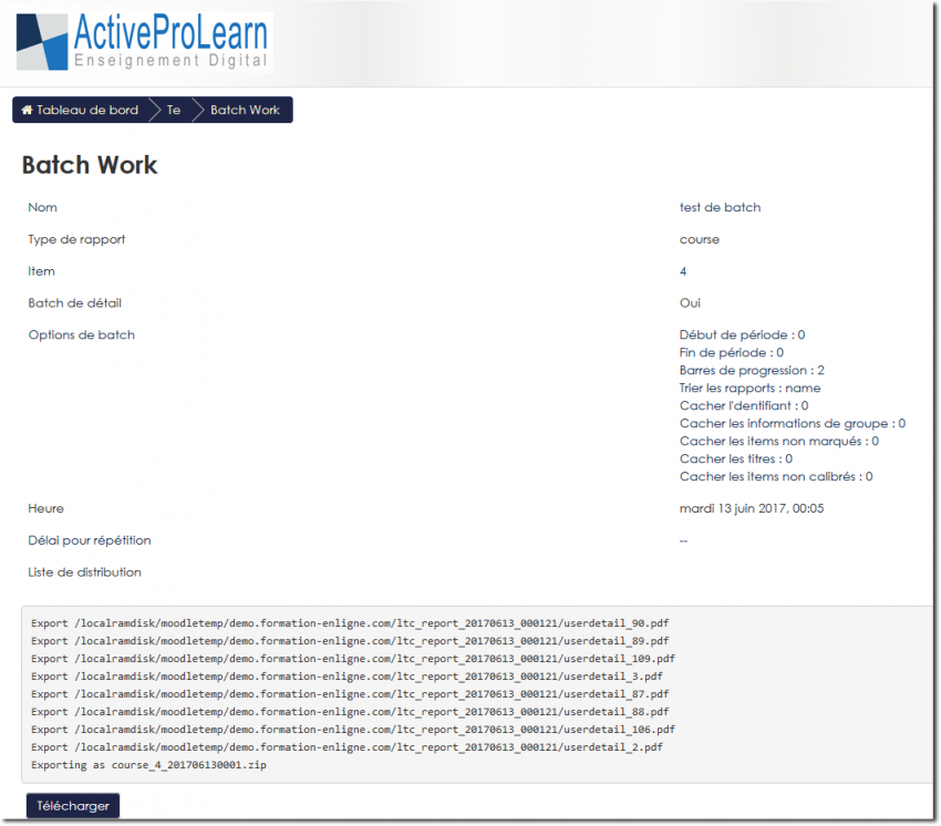 Il est fortement conseillé de programmer les batch pour un déclenchement à des heures de faible affluence su votre site de production.