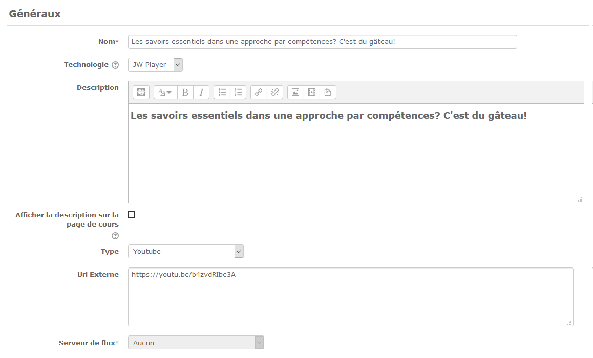 - Nom : Il s'agit du nom qui apparaitra dans la page du cours.