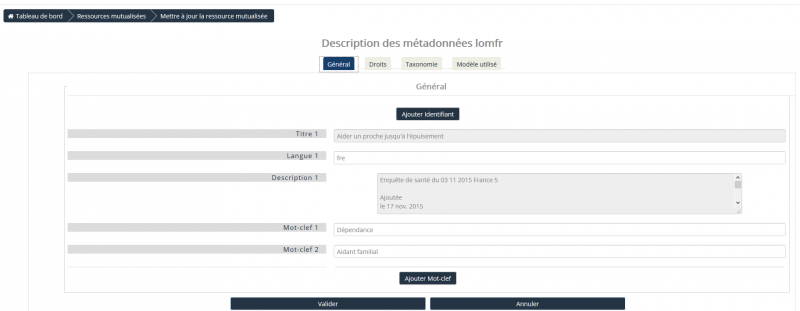 - Description : Description de la ressource, qui seront reprises dans les métadonnées