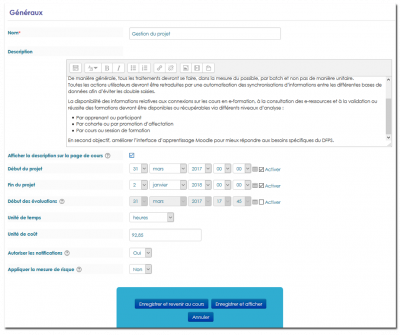 - Description : Il s'agit de la description du projet que vous pouvez faire apparaitre ou ne pas apparaitre dans le cours.