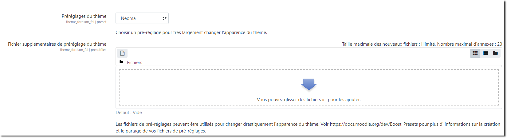 Accès : Admin du site/présentation/thème/FordsonFEL/preréglages