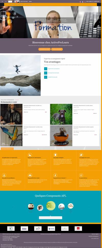 Le thème présente les avantages d'une page d'accueil orientée marketing avec une apparence très soignée, tel qu'on en voit habituellement sur les sites internet. Ce thème pour Moodle est extrêmement souple et facile à prendre en main, pour répondre à tous les besoins de communication en formation. Il autorise de nombreuses possibilités de personnalisation et de variantes de choix d'affichage afin de s'adapter à votre charte graphique.