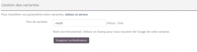 Pensez également à à indiquer à titre de mémo (pas d'impact fonctionnel) le nom de votre variante de thème.
