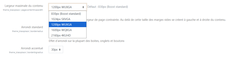 Accès : Admin du site/présentation/thème/Klassplace > Sous menu Réglages généraux