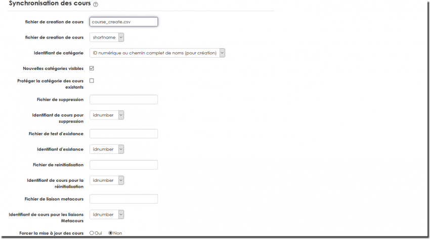 - Choisir le comportement de la fonction de création lorsque le cours existe.